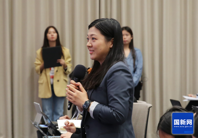 美国国际市场新闻社记者提问(赵一帆摄)